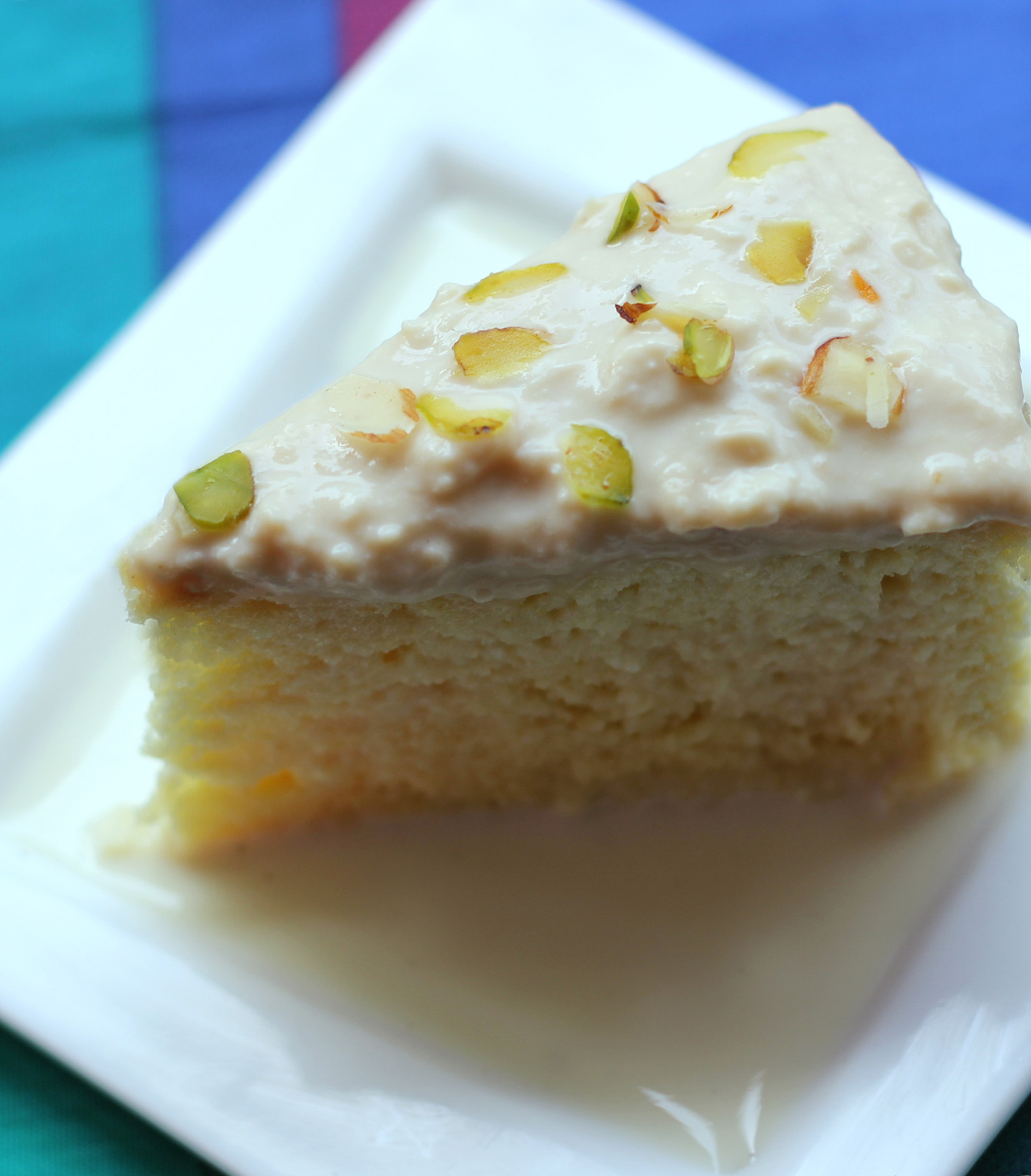 The rabri topping was my idea of course and so this version of the cake should actually be called quatre leches.