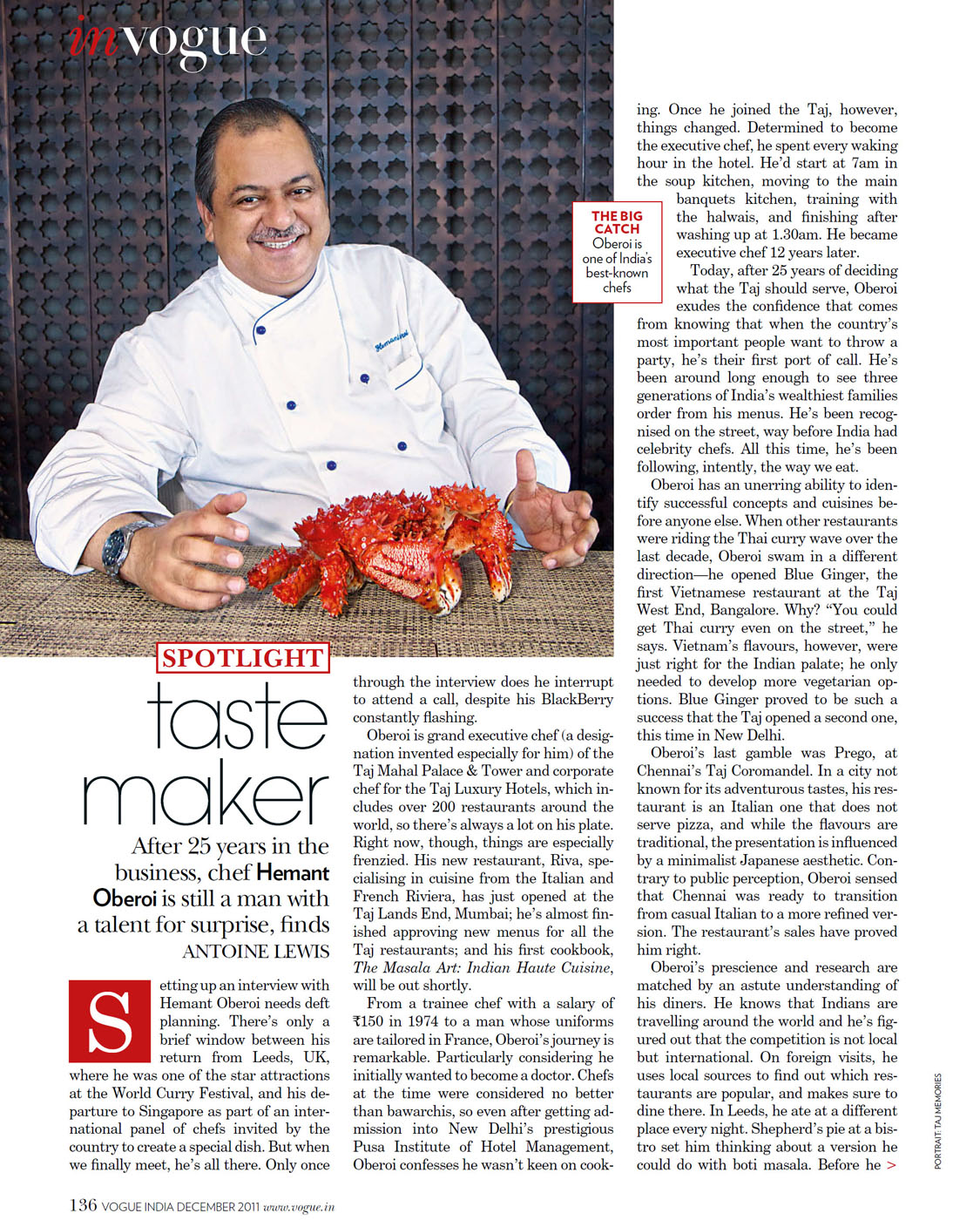 Executive Chef Hemant Oberoi, Taj Mumbai Vogue Share this: Share on LinkedIn (Opens in new window) LinkedIn Share on Pinterest (Opens in new window) Pinterest Share on Tumblr (Opens in new window) Tumblr Email a link to a friend (Opens in new window) Email Print (Opens in new window) Print Share on WhatsApp (Opens in new window) WhatsApp More Share on Telegram (Opens in new window) Telegram Share on Facebook (Opens in new window) Facebook Share on X (Opens in new window) X Like Loading...